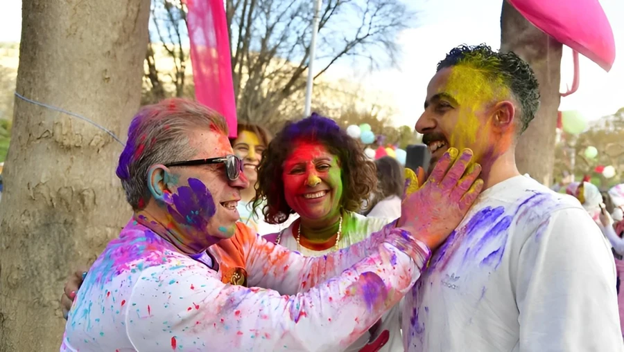 People celebrate the Holi Festival in Damascus, Syria, March 9, ...